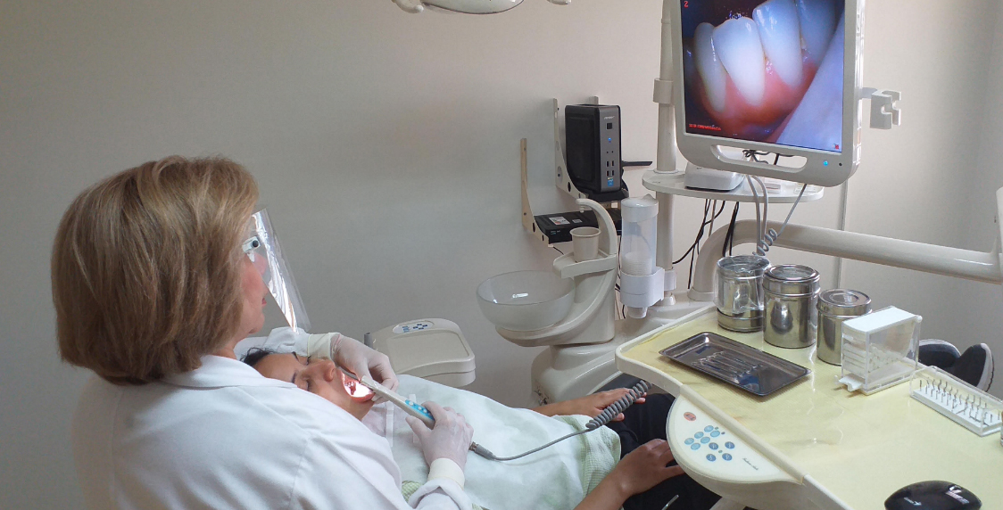 Nuestros pacientes pueden visualizar en vivo y en directo su diagnóstico con este dispositivo digital que además sirve para fotografiar cada detalle del tratamiento. Permite mostrar la anatomía dentaria y sus patologías a través de macroimágenes ampliadas decenas de veces. La Cámara intraoral refleja de modo instantáneo las imágenes en el monitor lo que ayuda a un diagnóstico certero y permite al paciente ver el antes y después de su tratamiento, y le brinda más confianza.